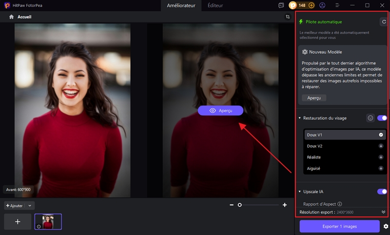 Partie 4 : Comment augmenter la résolution d'images de faible qualité avec HitPaw FotorPea